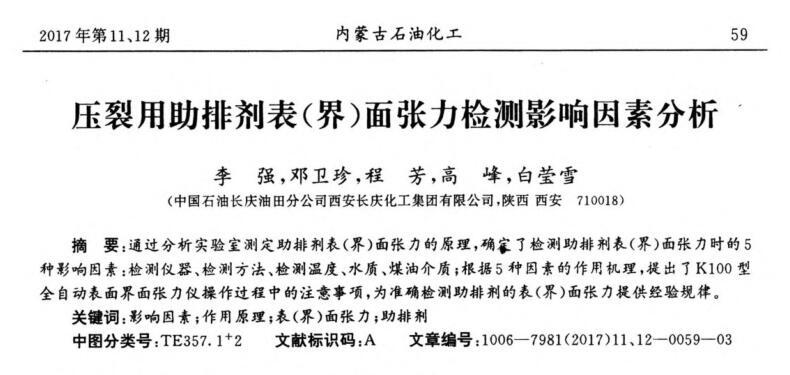 > 泡沫酸液表面張力調控與無機礦物溶蝕解堵特性研究(一)