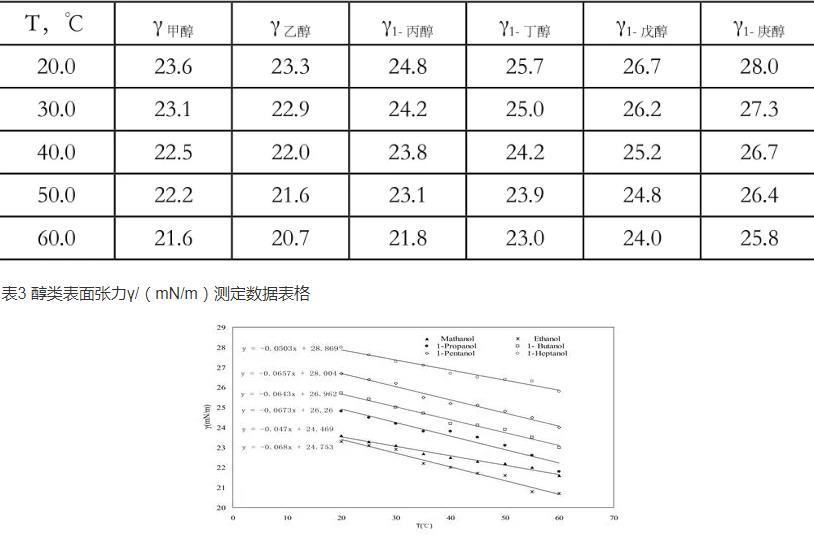 表面張力的意義,醇類在不同溫度下的表面張力測定數據